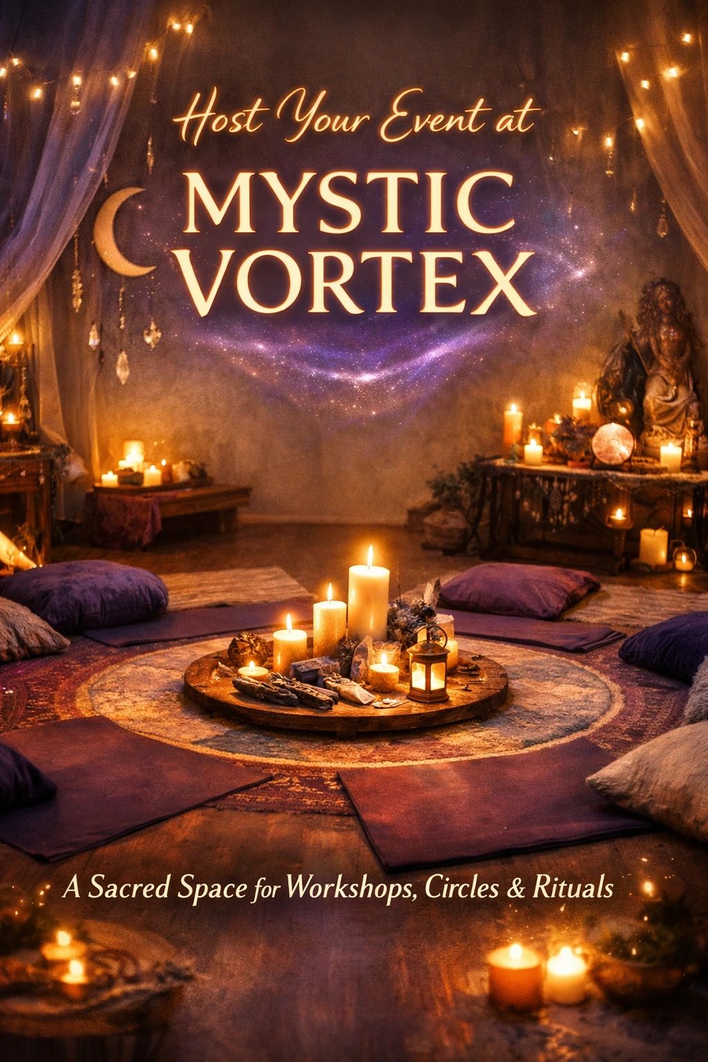 Mystic Vortex offers a cozy and intimate environment designed for connection and spiritual experiences.
